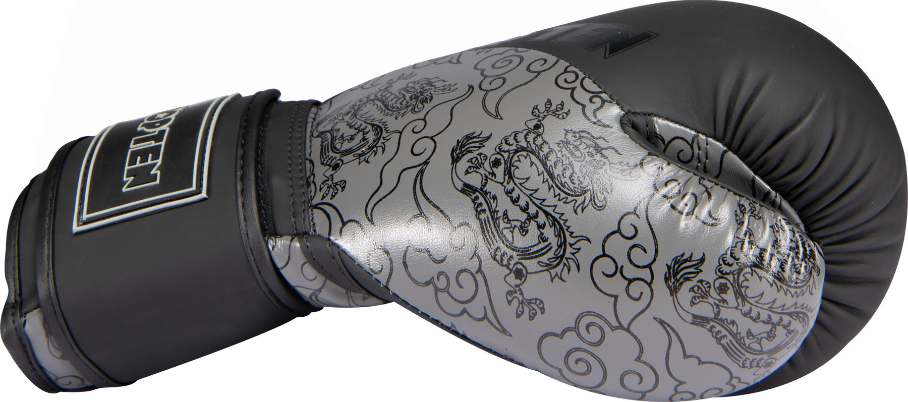 Bienvenue dans l’année du dragon avec TOP TEN et les gants de boxe « Dragon » de la série du même nom. Les gants en similicuir colorés présentent le 5ème signe du zodiaque chinois comme motif imprimé de haute qualité sur la face extérieure et intérieure de la main. Pour garantir votre succès, une mousse MLP multicouche optimisée pour les performances se trouve à l’intérieur des protections. Les impulsions sont immédiatement absorbées et réparties sur toute la surface des gants. Grâce à la manchette à scratch, les gants « Dragon » restent bien en place sur la main et peuvent être enfilés et retirés de manière autonome.