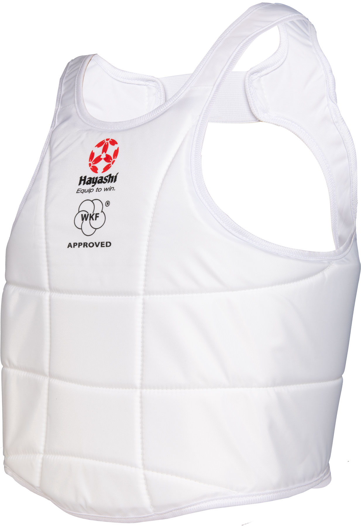Tout le monde n’a pas un gilet blanc – mais dans le kumite karaté, il ne devrait en aucun cas manquer. Avec le gilet de protection Hayashi, tu obtiens un outil de sécurité léger pour ton torse. La surface de protection compartimentée se pose à plat sur la zone du thorax et absorbe parfaitement l’énergie des coups de poing et de pied. Le gilet de protection surprend par sa nature simple mais particulièrement efficace. Des bandes élastiques souples assurent une tenue confortable de ton équipement de protection et rendent le port de cet équipement labellisé WKF unique en son genre.