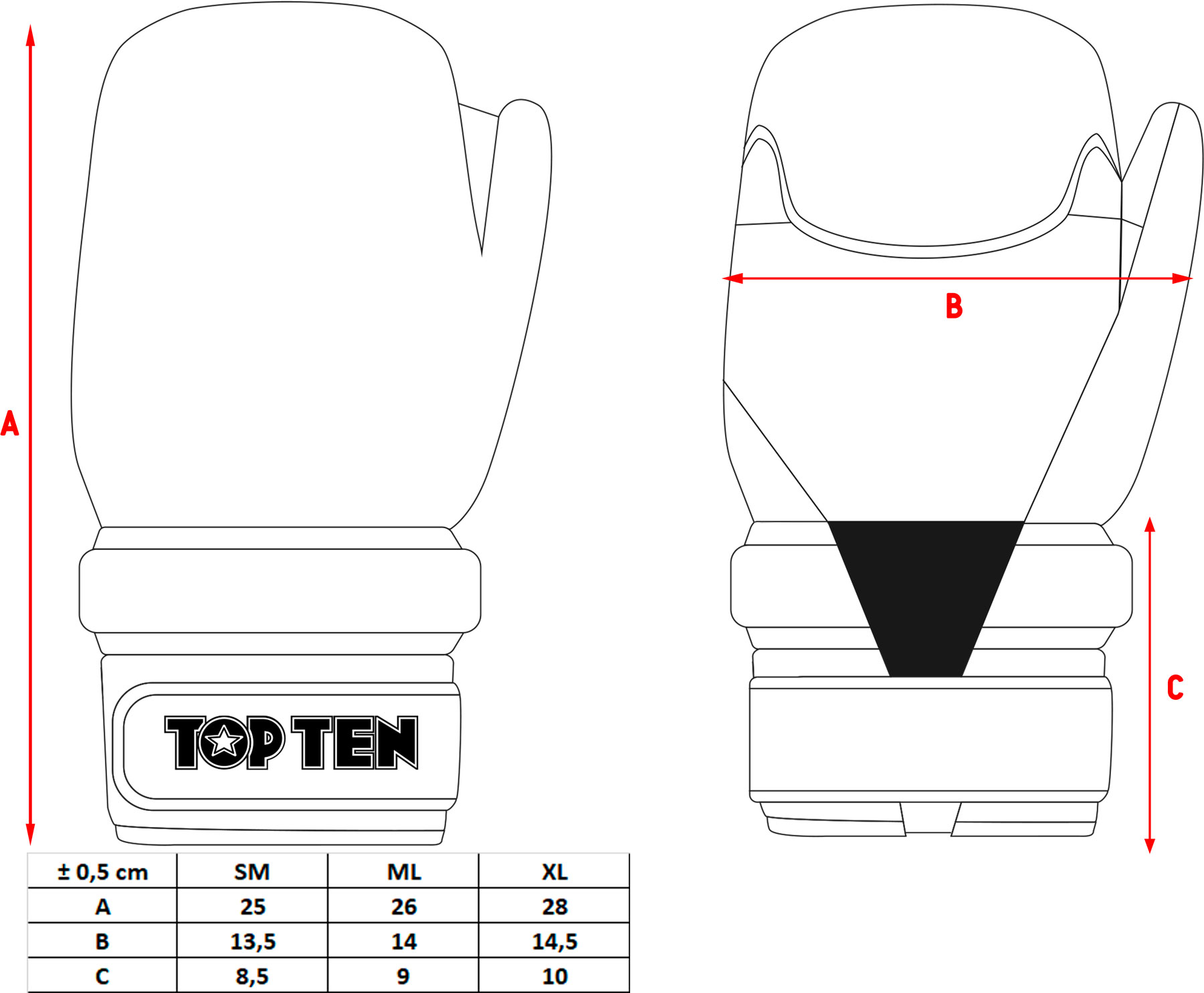 Place tes mains dans la bonne position et porte les gants Open Hands « ITF Superfight 3000 » de TOP TEN. Grâce à leur forme anatomique, ils luttent contre la fatigue prématurée de tes mains et apportent en même temps une énorme protection grâce au rembourrage en mousse PPS de haute qualité. La paume ouverte est pourvue d’un matériau anti-dérapant ASL qui n’irrite pas la peau et évacue la transpiration. La surface de frappe du « ITF Superfight 3000 » offre une bonne adhérence grâce à sa couverture en cuir véritable et convainc par ses propriétés naturelles au contact.