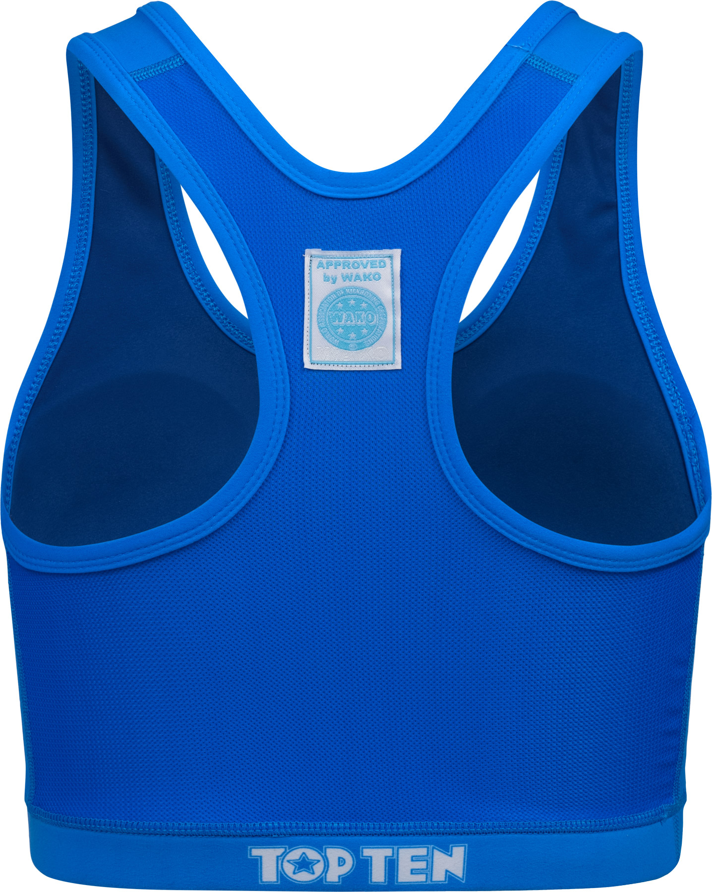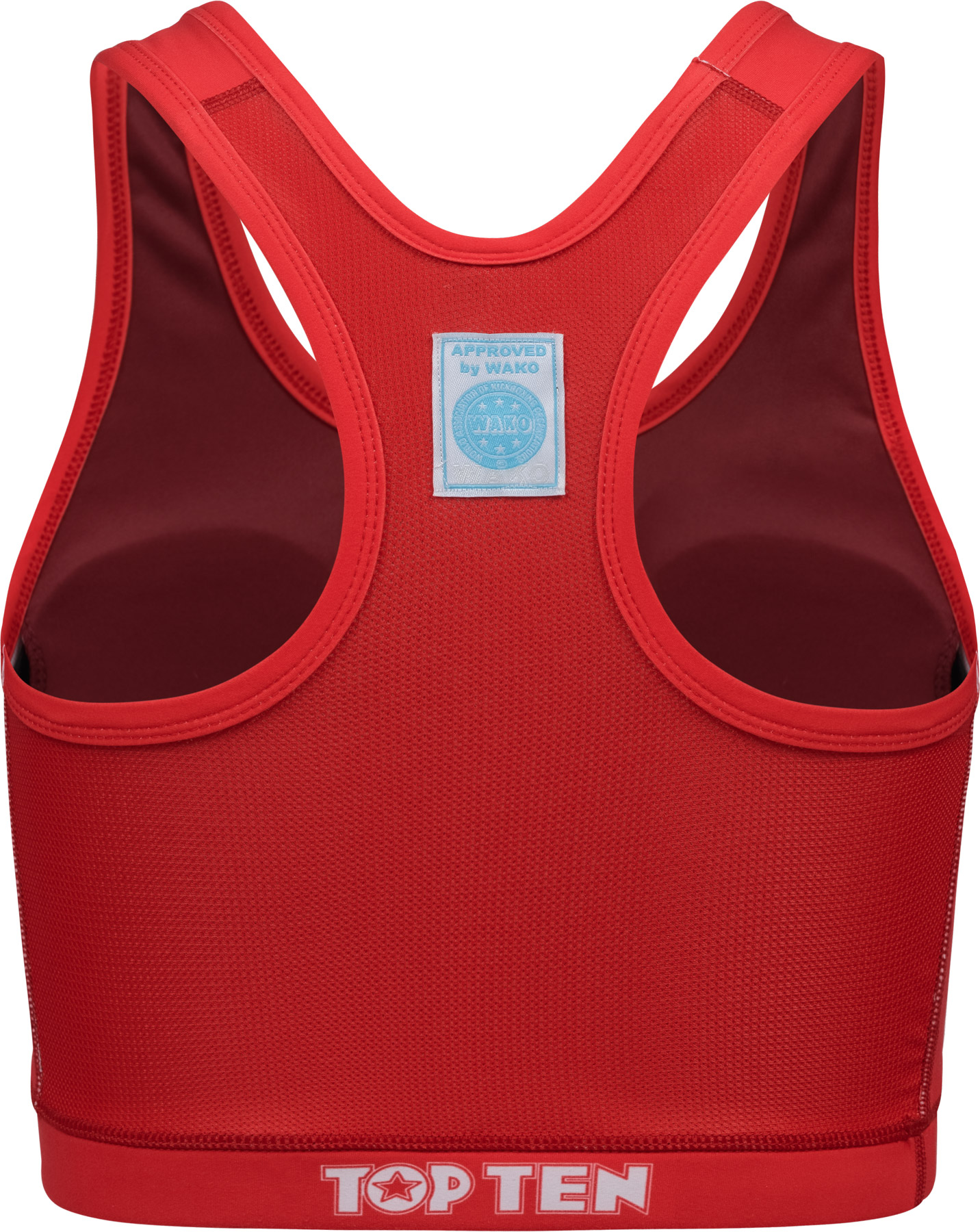 Le Sports Bra « WAKO » de TOP TEN est le compagnon idéal pour toutes les kickboxeuses qui veulent vraiment mettre les gaz en full-contact, K1 et Kicklight. Grâce à son tissu flexible, le soutien-gorge s’adapte parfaitement à chaque mouvement, de sorte que tu te sentes libre et en sécurité à tout moment. Il est 100 % opaque et est livré avec des coques souples amovibles pour encore plus de confort. Dans les couleurs de compétition rouge et bleu, le TOP TEN Bra est disponible avec le label WAKO-approved sur le dos – idéal pour briller sur le ring et à l’entraînement.