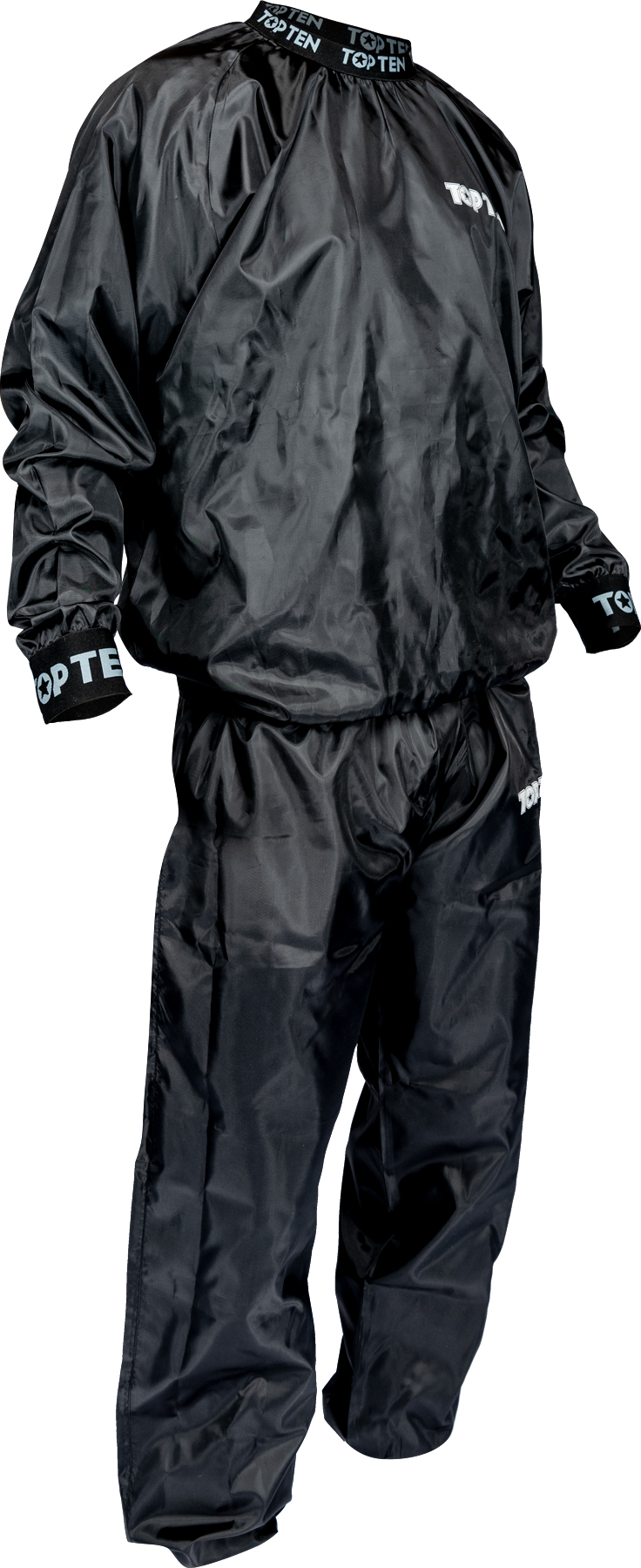 Vous contrôlez votre poids avec précision. La tenue de sudation « Shelter » de TOP TEN vous permet d’obtenir les bons chiffres sur la balance grâce à la perte d’eau. Son matériau en polyamide scellé retient la chaleur près du corps, ce qui stimule la production de sueur. Des poignets serrés sur les bras et les jambes stoppent l’échange d’air et assurent un ajustement parfait du haut et de la veste. Avec son design simple, le deux-pièces « Shelter » est définitivement un modèle que vous porterez pour vous échauffer ou pour des courses légères.